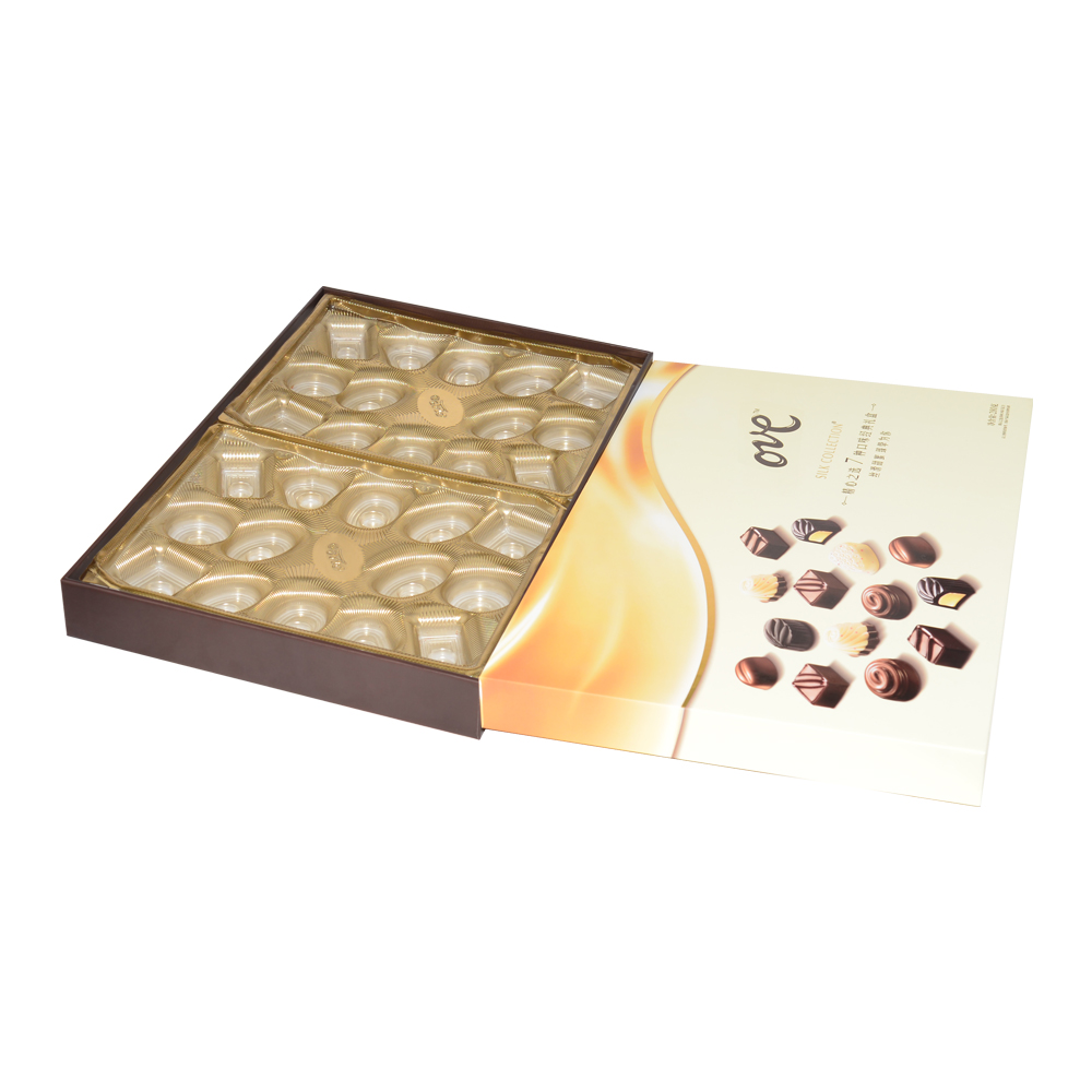 Wholesale Recycled Luxury Chocolate Packaging Lid and Base Gift Box with Custom Printing and Gold Plastic Tray
