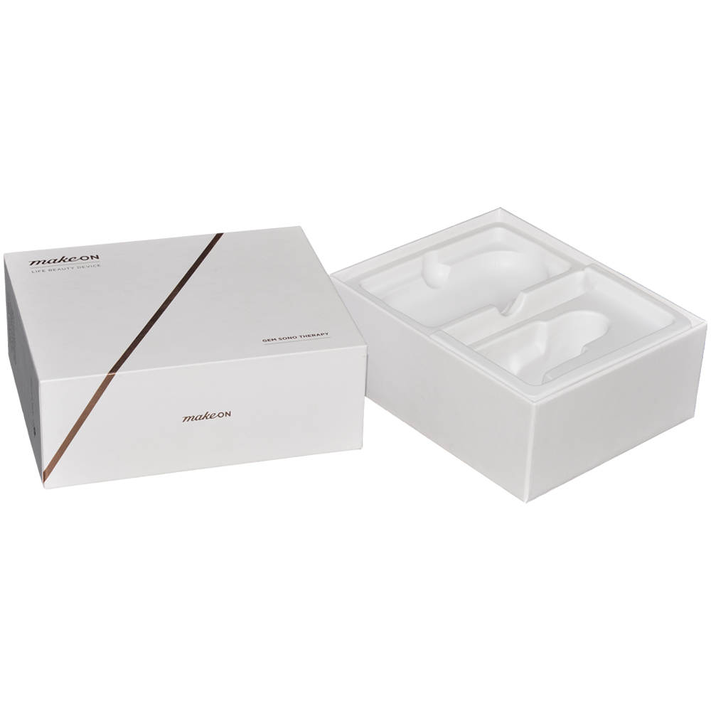 Custom Lid and Base Paper Box with Plastic Holder and Gold Hot Foil Stamped Logo for Electronics Packaging