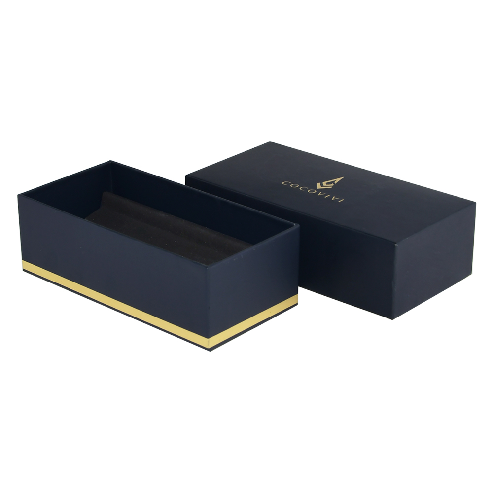 1. The dimension of the custom packaging box is customized, it is 12*4*3 cm.2. The material of the custom packaging box is 1200 GSM rigid paper, 157 GSM art paper, they are eco-friendly and recycled.